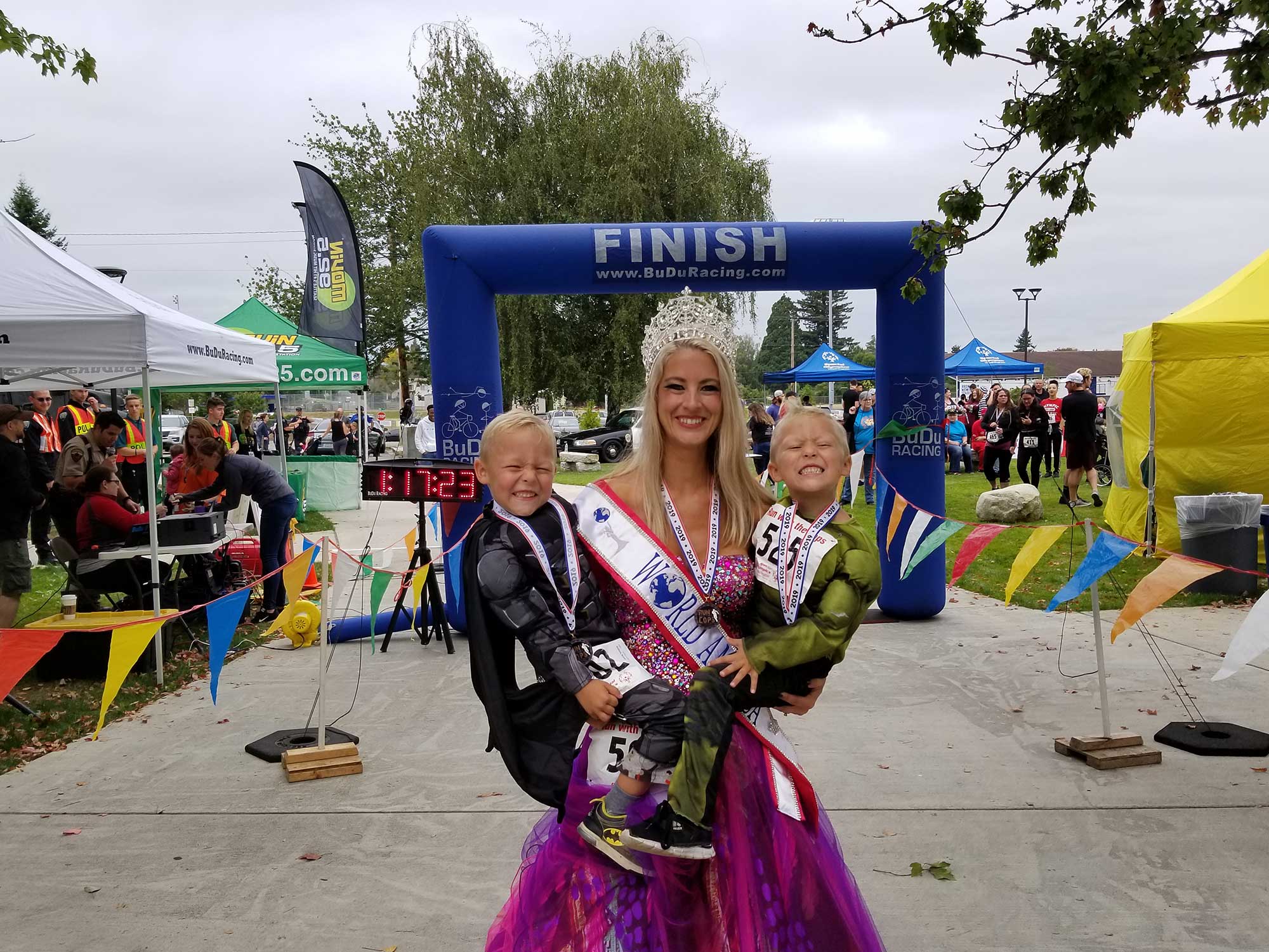 My son Brycen and twin boys Brodi and Bronx have been tagging along with me to charity 5Ks since the beginning. I started attending lots of charity events when I won my first title as Mrs. Poulsbo in 2019, and my boys wanted to come with me. I loved the idea, and saw it as an amazing opportunity to show them the importance of philanthropy and volunteerism.